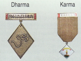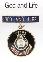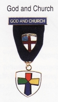Most of the awards consist of bar pins, ribbons, and pendants, and are worn on the uniform above the left pocket on formal occasions. In addition, the Religious Emblem Square knot, shown at the top of this page, may be worn on the uniform over the left pocket by youth or adults who earned any of the religious awards. One or more miniature devices are affixed to the knot to indicate which level(s) of the award was earned. For more information on the Youth Religious Emblem square knot patch, Click Here. For information on the devices which are attached to the knot, Click Here.