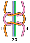 Bring strand 4 under strands 2 & 3, then up through the loop created by strand 1. Tighten |